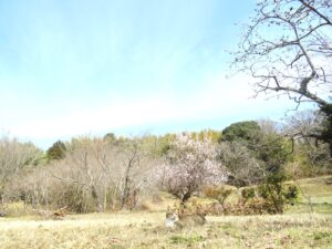 まだまだ枯草色の風景ですが「目にはさやかに見えねども」、秋が風の音ならば、春は梅の花の香りです。